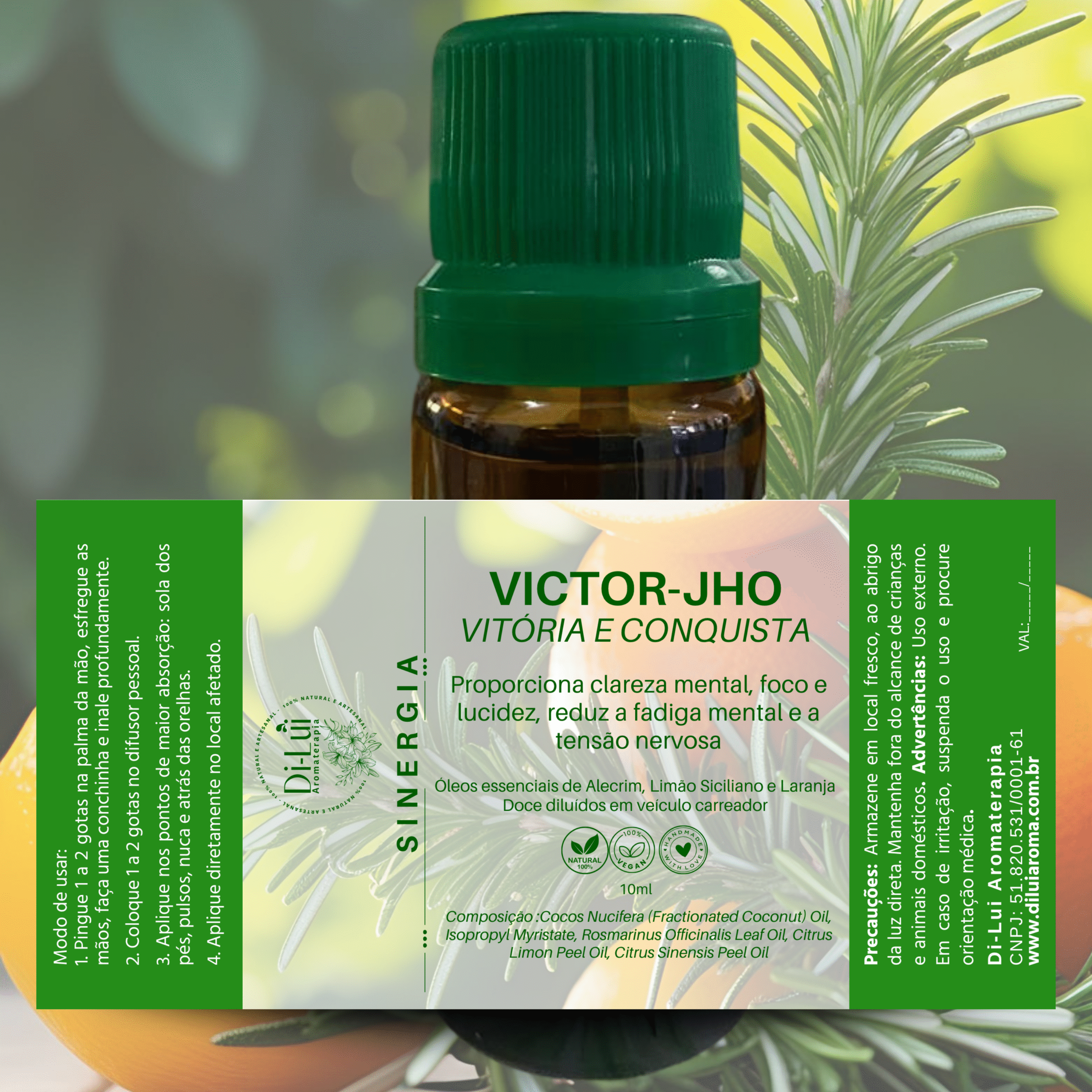Victor-Jho é a sinergia perfeita para quem busca elevar o desempenho cognitivo, aprimorar a concentração e clareza mental, e manter o raciocínio afiado. Com uma combinação estratégica de óleos essenciais de Alecrim, Limão Siciliano e Laranja Doce, Victor-Jho oferece um aroma estimulante e vibrante, que mistura notas herbais com toques cítricos e frescos, criando uma atmosfera de foco e vitalidade.